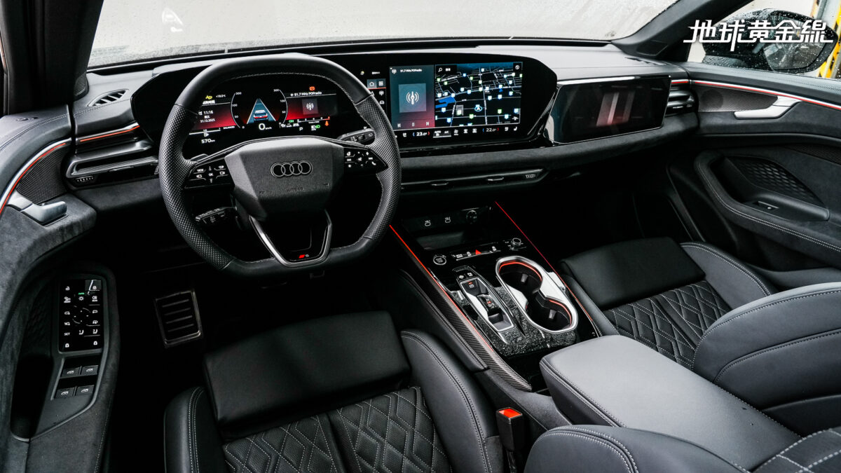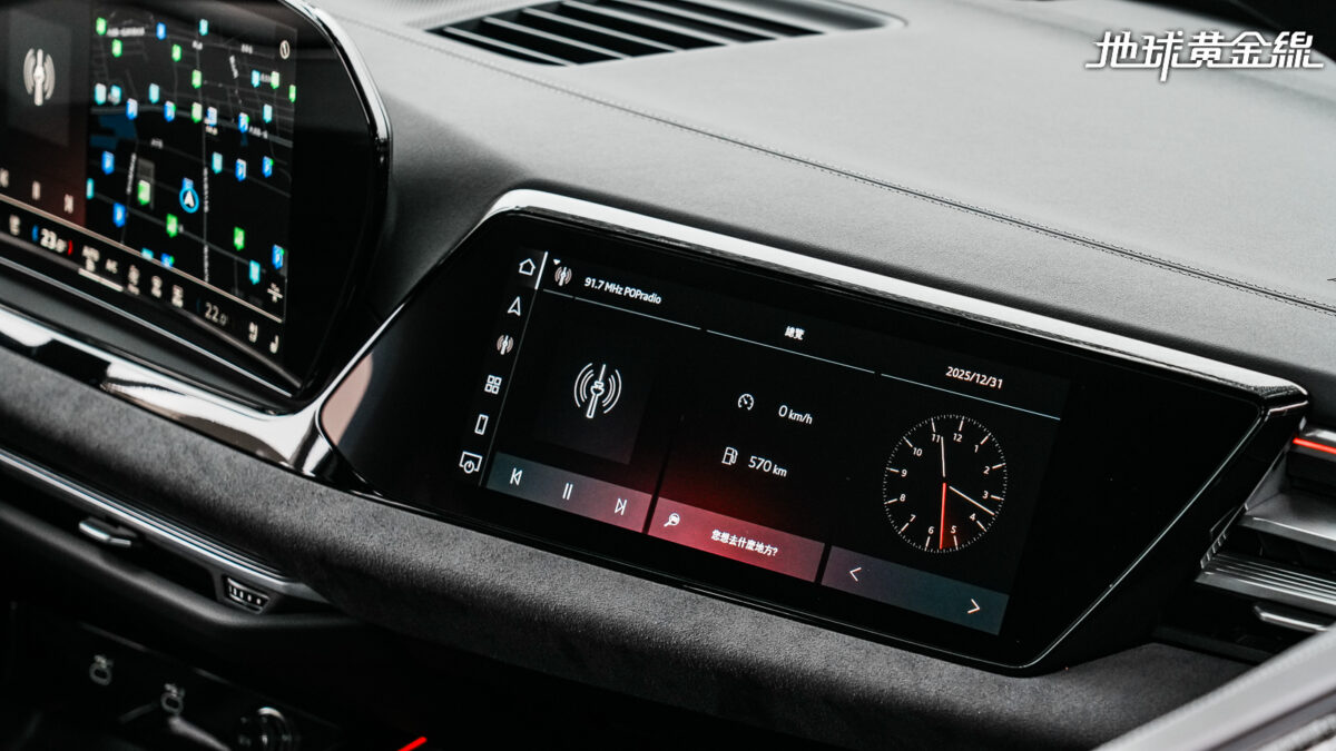 打開A6 Avant車門,熟悉的Audi新世代座艙鋪陳同樣出現在A6 Avant車內。12.3吋Audi Virtual Cockpit數位虛擬儀錶板與14.9吋中央MMI系統觸控顯示幕共同組成駕駛導向的曲面螢幕介面。搭配觸控式的多功能方向盤、電子線傳檔位控制介面等,共同組成數位化的座艙佈局。同時,A6 Avant全車系標配10.9吋前乘客座觸控螢幕,試駕車更選配HUD抬頭顯示器,更進一步強化座艙內數位化科技感。
