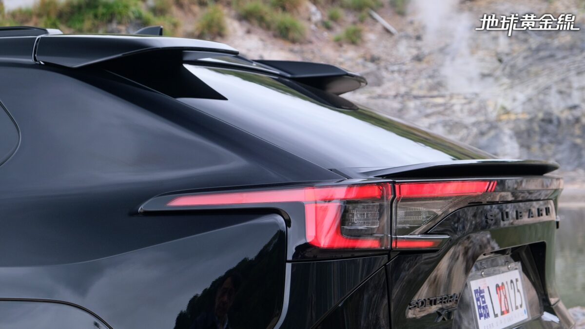 小改款Solterra延續既有的跑旅輪廓,除了接近斜背角度的尾柱,車頂後方還附上造型特殊的分離式尾翼,車尾末端再加入一片鴨尾翼優化空氣力學。LED尾燈組一樣結合C字形燈條設計,但中間廠徽改為「SUBARU」字標,跟左下方的車型銘牌統一採黑化處理。