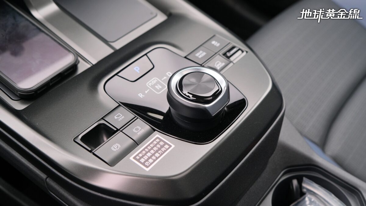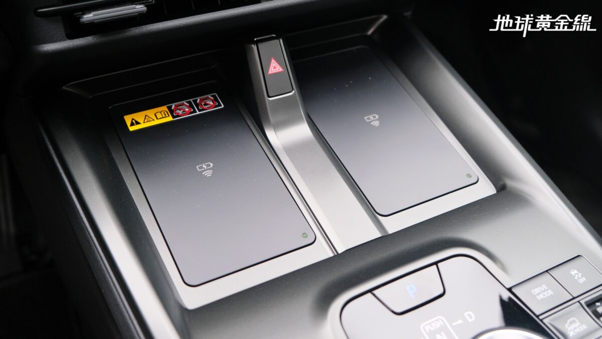 視線往下看還能發現,中央鞍座上設置了兩組手機無線充電座,下方另有一處置物空間,排檔維持旋鈕式設計,往右轉進D檔、往左轉進倒檔,往下按則是切換至空檔。後方的中央扶手箱採用左右雙開式設計,不管左翻或右翻都能打開,使用上頗為便利。