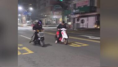 新北89猴未戴安全帽深夜騎車街頭競速,拔車牌躲避監視器下場曝光 有民眾昨(3)日深夜騎車行經新北市新莊市區時,發現2輛未懸掛車牌的機車疑似在街道上競速,2名年輕男子不僅未帶安全帽,其中1人還猛催油門,造成現場冒出大量白煙,危險行徑全被拍下。新莊警方目前已根據監視器畫面追查,後續將釐清騎士身分且將依公共危險罪偵辦。 2024 年 11 月 4 日 看更多
