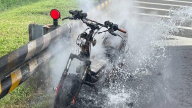 台南電動車自撞分隔島翻肚躺路,底盤冒煙消防灑水3小時 台南一家四口驚險逃過電動車翻覆意外,事件發生於昨 (5) 日下午近1點,一輛電動車在台南南區台17線濱南路段行駛時,突然失控自撞分隔島後翻覆,車底鋰電池隨即冒出大量白煙。42歲吳姓駕駛與38歲妻子及8歲、9歲兩個兒子雖自行逃出,但身上多處擦挫傷,所幸意識清楚。消防人員持續灑水近三小時才成功讓車輛降溫,最後將車輛拖回原廠檢修。 2025 年 7 月 7 日 看更多