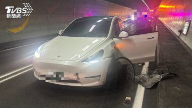 特斯拉自撞雪山隧道輪框飛散,撞壁車內4人無傷卻釀北上大塞車 日 (8月10日) 11時30分許,一輛白色特斯拉行駛國5雪山隧道內北向15.6公里處,不慎突然自撞隧道壁肇事,左前輪遭撞掀起來,輪框散落於車道,所幸車上4人均無人受傷。事故造成雪隧車輛回堵,11時45分許先將輪框排除,事故車輛也於12時10分拖吊排除。 2025 年 8 月 11 日 看更多