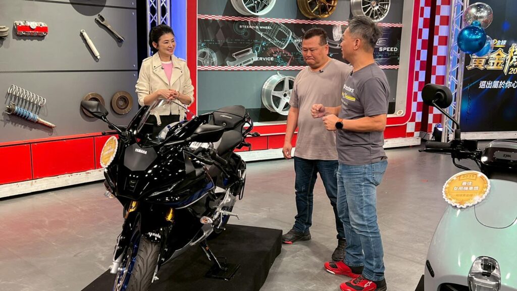 達人們表示,Yamaha R15給予了18~25歲年輕騎士進入仿賽世界的機會,結果主持人詢問現場達人們,自評是否還能駕馭R15?沒想到兩位女達人艾兒與阿娟都舉手,顯示R15的帥氣是讓女性都很喜歡的車款。