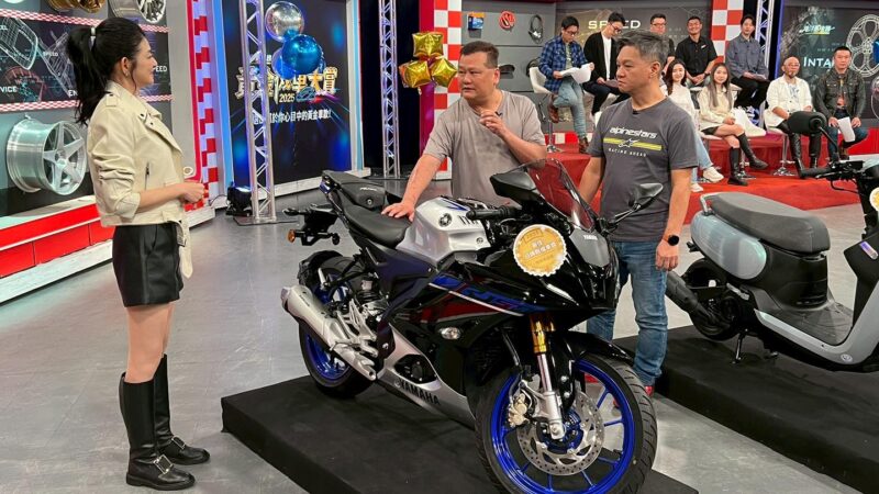 《地情黃金線》舉辦2025黃金機車大賞,在白牌輕檔車票選中,Yamaha R15從8款入圍車款中脫穎而出,榮獲了「最佳白牌輕檔車」。達人小萊姆介紹,Yamaha R15外觀設計極具吸引力,其車頭設計用上家族化的臉譜,讓人難以分辨其與更高級的R系列如R3、R7究竟有何明顯差異。