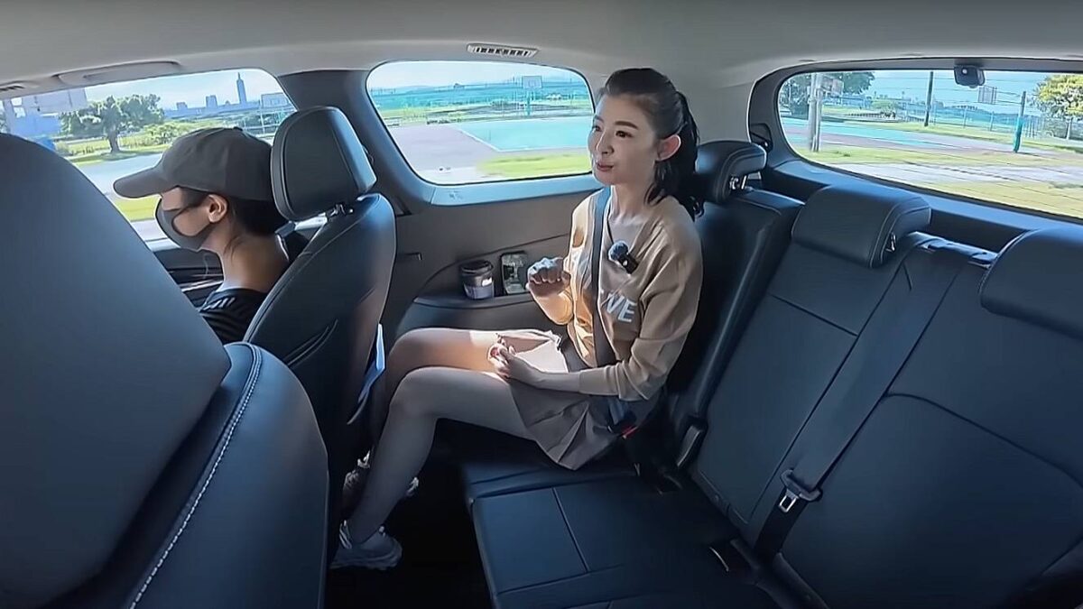 蘇宗怡開場就挑戰G50 PLUS第三排座位,強調「一家人試駕一定要每排都坐坐看」。在第二排就座者約166公分的前提下,170公分的蘇宗怡在第三排仍保有一個拳頭左右的膝部空間與充裕的頭部高度。更關鍵的是,第三排椅背具備多段角度調整,能從較直的坐姿放鬆到更舒適的斜躺,應付長途需求。