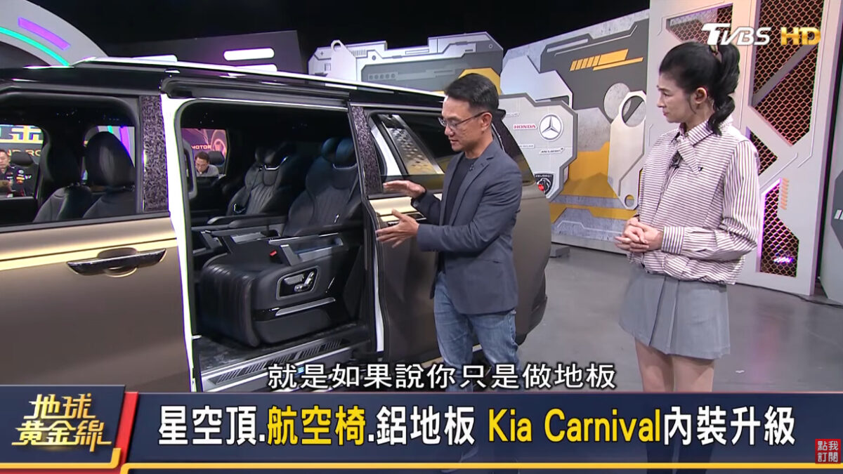 車室改裝則聚焦在後座,包含頂篷黑化並加裝星空頂、全電動航空椅與鋁地板。葛蘭特說明,頂篷黑化工程繁複,不僅要處理布料與膠層,A至D柱飾板與冷氣出風口細節也必須重做,施工時間與成本都較高。航空椅則具備12向電動調整與語音控制,並採隱藏式滑軌設計,同時可左右橫移,方便第三排乘客進出。整體而言,航空椅搭配鋁地板的升級組合,市場要價就落在20萬左右。