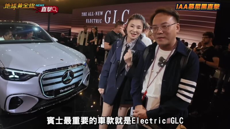 《地球黃金線》主持人蘇宗怡與達人小七前往德國IAA Mobility 2025,受Mercedes-Benz之邀,搶先第一手欣賞賓士全新GLC Electric。雖然車名有著「GLC」三個字,但小七強調,這款純電的GLC與燃油版可說是截然不同,因為使用全新MB.EA平台打造,而從現場展場的主視覺設計,就已經在暗示GLC Electric的車頭格柵樣貌了。